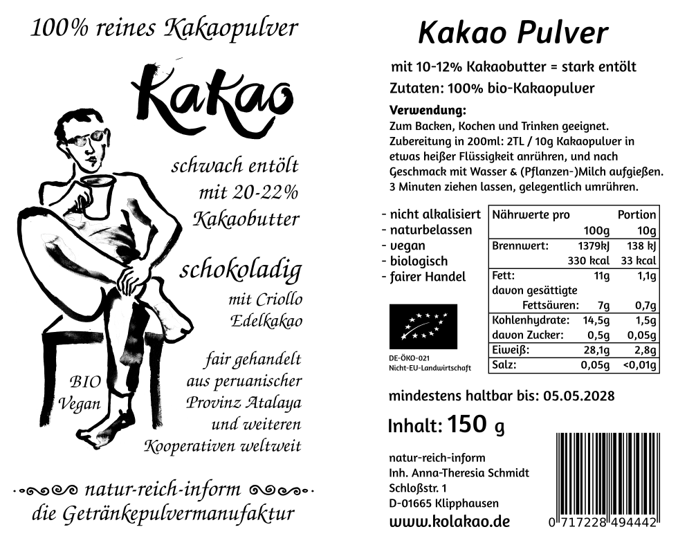 EdelKakao - schwach entölt, 100% Kakaopulver
