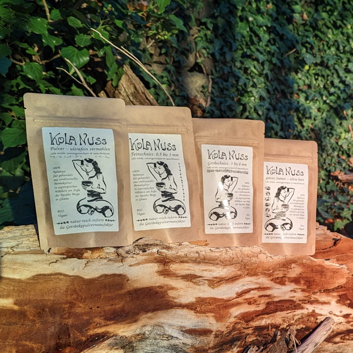 Entdecken Sie die Vielseitigkeit der Kolanuss mit diesem hochwertigen Set, das vier Feinheitsgrade vereint: ganze Kolanüsse, grob geschnitten, fein geschnitten und ultrafein vermahlen. Jede Variante stammt aus Bio-zertifiziertem Anbau und wird unter fairen Bedingungen in den subtropischen Wäldern am Fuße der Kwahu Berge (Ghana) sowie im Regenwald der Atlantikküste Brasiliens kultiviert. Die Kolanüsse (Kola nitida) werden sonnengetrocknet, naturbelassen und von Hand verlesen – für ein reines, aromatisches Erlebnis.