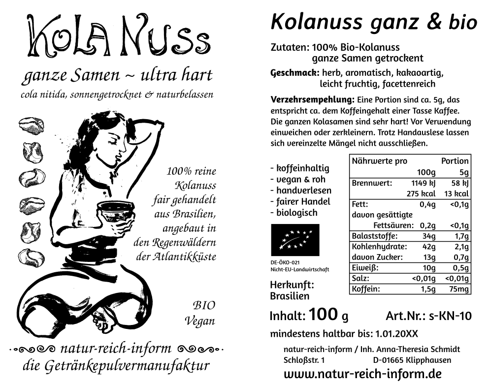 - Qualität: 100 % reine, geschälte und handverlesene Kolanuss